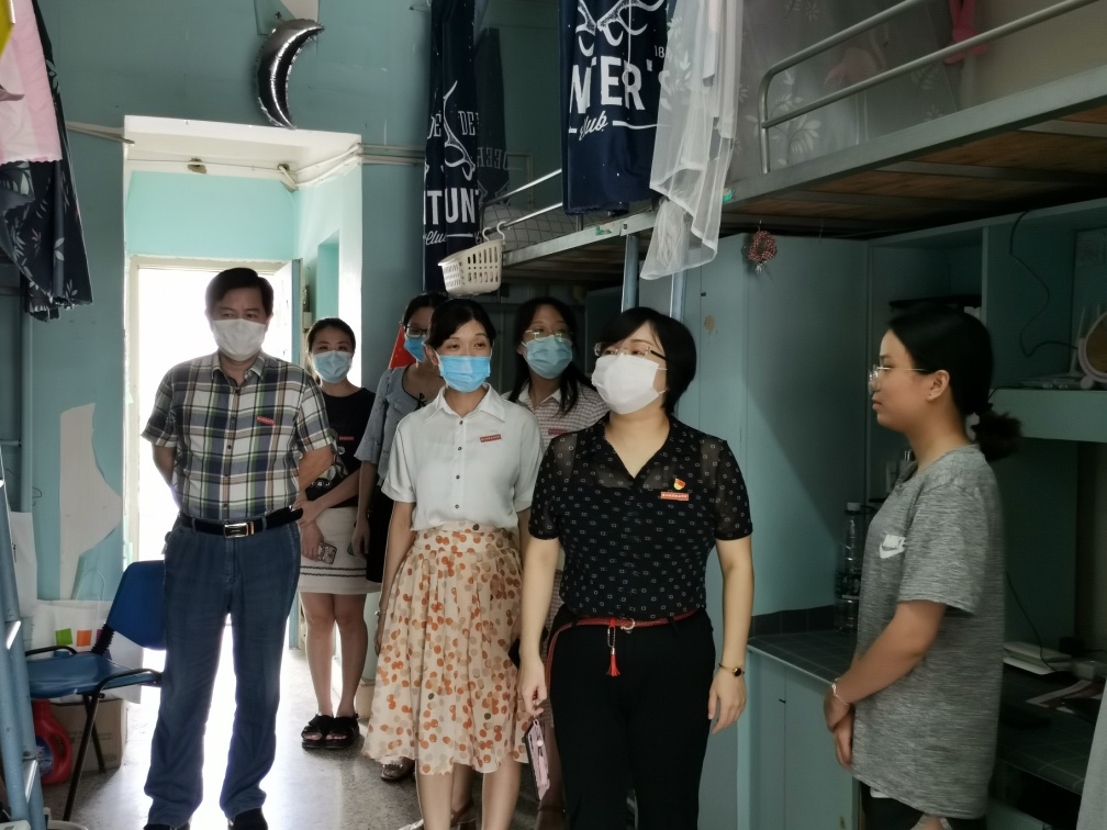 为积极响应疫情严防严控政策,排查宿舍安全隐患,切实做好员工返校后的疫情防控工作,构建安全文明的宿舍环境,我系党总支书记吴李霞、系主任张少华、系副书记洪菁、辅导员、班导师于9月14日开展宿舍走访检查工作,督促员工做好自身防范,营造良好的宿舍环境。