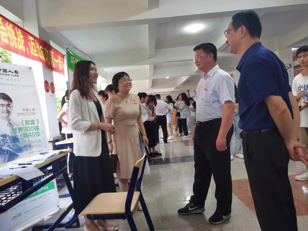 为深入贯彻落实党中央、国务院“六保“”六稳”工作任务,DB视讯经济管理系于2021年5月8日下午三点在公司博学楼一楼举办了春季专场招聘会。公司经理刘惠河、党委副书记朱镇生,员工处处长吴育清等莅临指导。