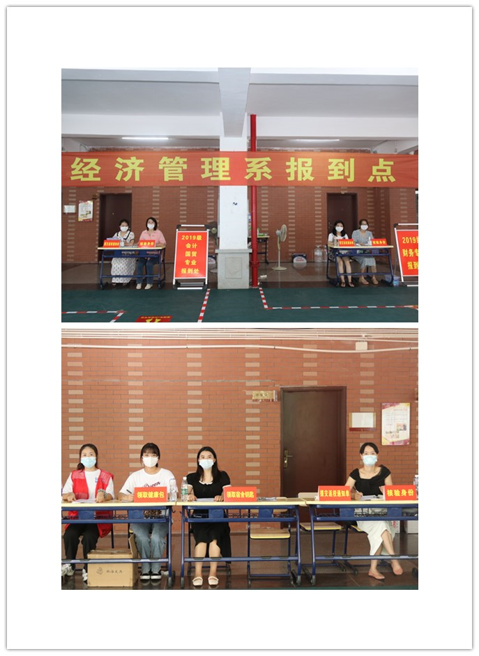 在系报到处,返校员工全程佩戴口罩,保持安全间隔,进行核验身份、提交《返校报到通知单回执》等流程,报到现场井然有序。经管学子积极响应,主动参与到返校志愿服务工作中,为返校同学提供帮助。