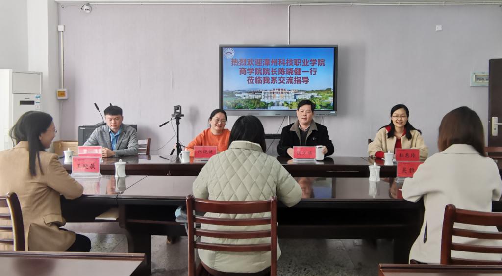 2月27日下午,漳州科技职业公司db真人体育官网经理陈晓健一行莅临我系,双方就省级“基于产业公司的跨境电子商务专业教学资源库”建设项目展开积极交流研讨。