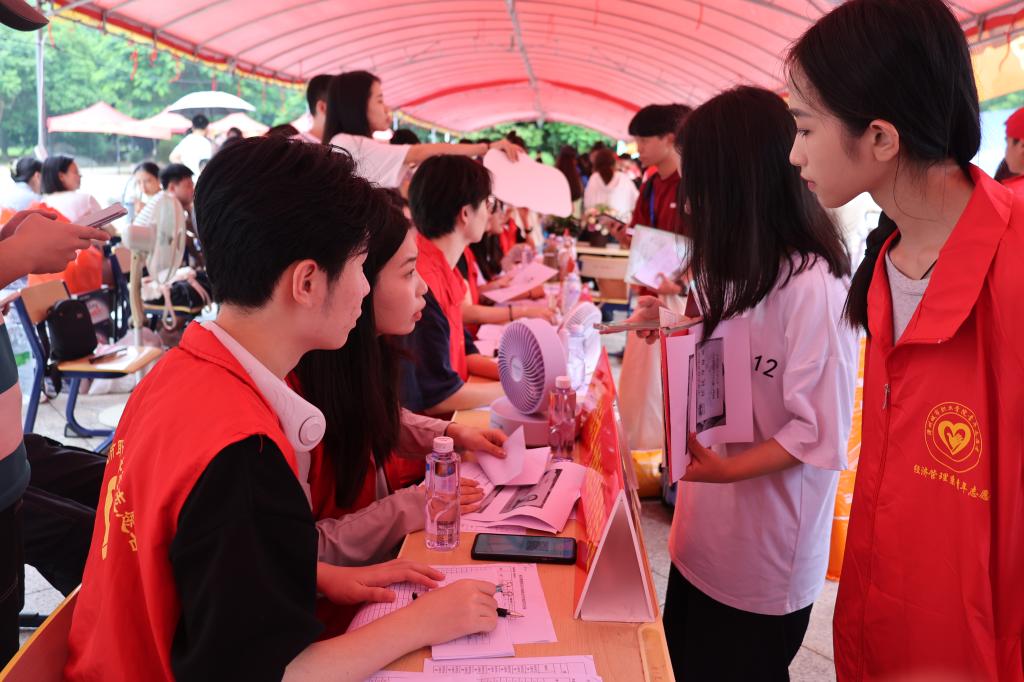 青年志愿者们身穿红色马甲挥汗如雨,往返奔走在迎新服务点与新生宿舍之间。他们积极主动地为新生答疑解惑、维持秩序、搬运行李、指引道路,用热情和汗水完成这一场“火辣”的迎新接力赛,为迎新现场增添了亮丽色彩。让初入大学的新生,感受到经管大家庭的温暖。