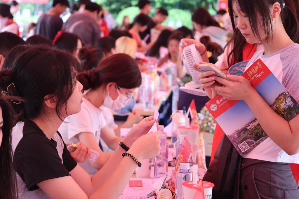 公司领导深入迎新报到点,了解新生报到情况,亲切慰问工作人员和志愿者,并表达对新生们的美好祝福。