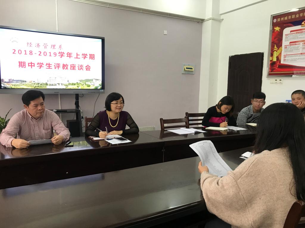 座谈会上员工代表畅所欲言,总结本班同学对本学期任课老师在教学过程中的不足之处及提出真挚的建议。系领导听取员工发言,并就有关问题与员工深入流。
