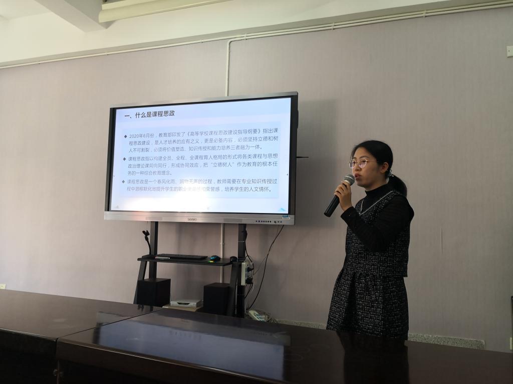 研讨会上,郑晓琳老师代表财务管理教研室发言,她从课程思政的要义、如何结合教学融入思政元素以及《财务管理》课程实践来分享交流。她以在全面分析课程内容的前提下,将集体主义精神、“储蓄理财与风险意识”、 “创新创业教育”、社会主义核心价值观等思政元素融入课程教学中,力求达到形式多样、与时俱进、润物无声的课程思政效果;周梅老师代表国贸专业教研室发言,她以《外贸英语听说》、《国际贸易基础》等课程为例进行了教学演示,以生动案例展现了在日常课堂教学中如何把国家意识、政治认同、文化自信、人格养成等思政元素与专业知识、专业技能的传授有机融合的实践探索,将外语教育过程变成外语教学领域社会主义核心价值观教育的重要阵地。