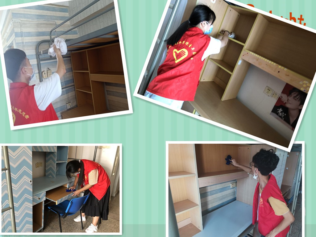 全体参与人员,根据新生宿舍编排,逐一排查宿舍硬件设施,包括床位、桌凳、洗衣池、电灯、热水器、风扇空调等,发现问题及时汇总报修。
