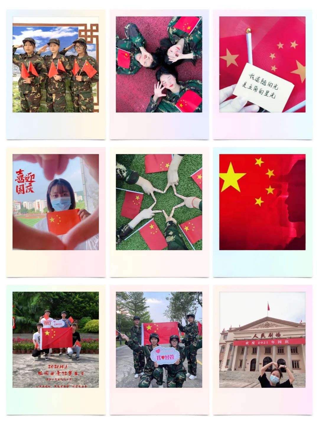 为庆祝中华人民共和国成立72周年,进一步加强新时代爱国主义教育,激发员工的爱国之心、报国之情、强国之志,经济管理系开展了“青春告白祖国”国庆主题系列活动。同学们积极参加“拍”国庆--我和国旗合影作品征集、“绘”国庆--手抄报等绘画作品征集、“创”国庆--创意手工作品征集等活动,通过不同的角度为祖国母亲献上经管学子的美好祝福。