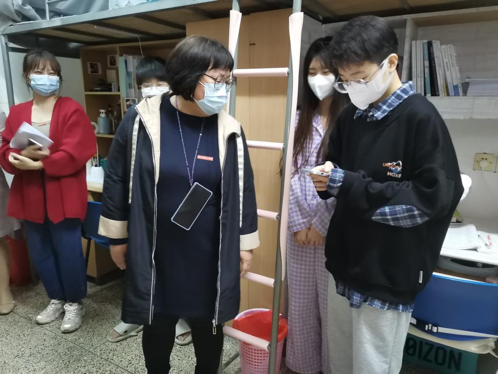 系副主任周晓红与同学们亲切交流,详细了解他们的日常作息和学习的情况,倾听同学们对在线教学的感受和建议,她希望同学们调整好生活作息时间,按时上课,注意饮食卫生,做到学习和健康两不误。