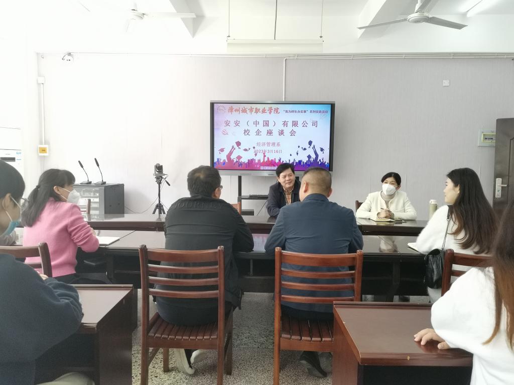 2023年3月16日上午,经济管理系邀请了安安(中国)有限公司到校举办专场招聘宣讲会。大数据财务管理、统计与会计核算的员工到场聆听。