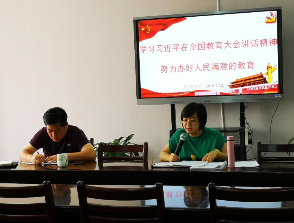为进一步增强我系教师教书育人的责任感和荣誉感,提高师德师风建设水平,促进教师整体素质提升,9月12日下午举行“全国教育大会精神”学习会,系党总支书记吴李霞同志领学了大会精神。