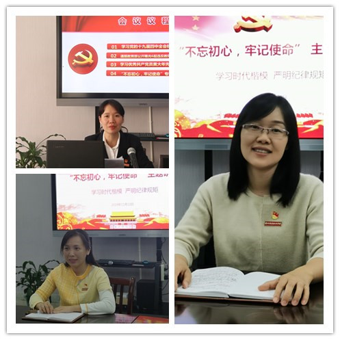 11月13日,经济管理系党总支举行“不忘初心、牢传记使命”主题教育第六专题学习研讨会,围绕“学习‘时代楷模’,严明纪律规矩”主题进行学习研讨。系党总支书记吴李霞主持会议并讲话。全体党员教师参加了学习研讨。