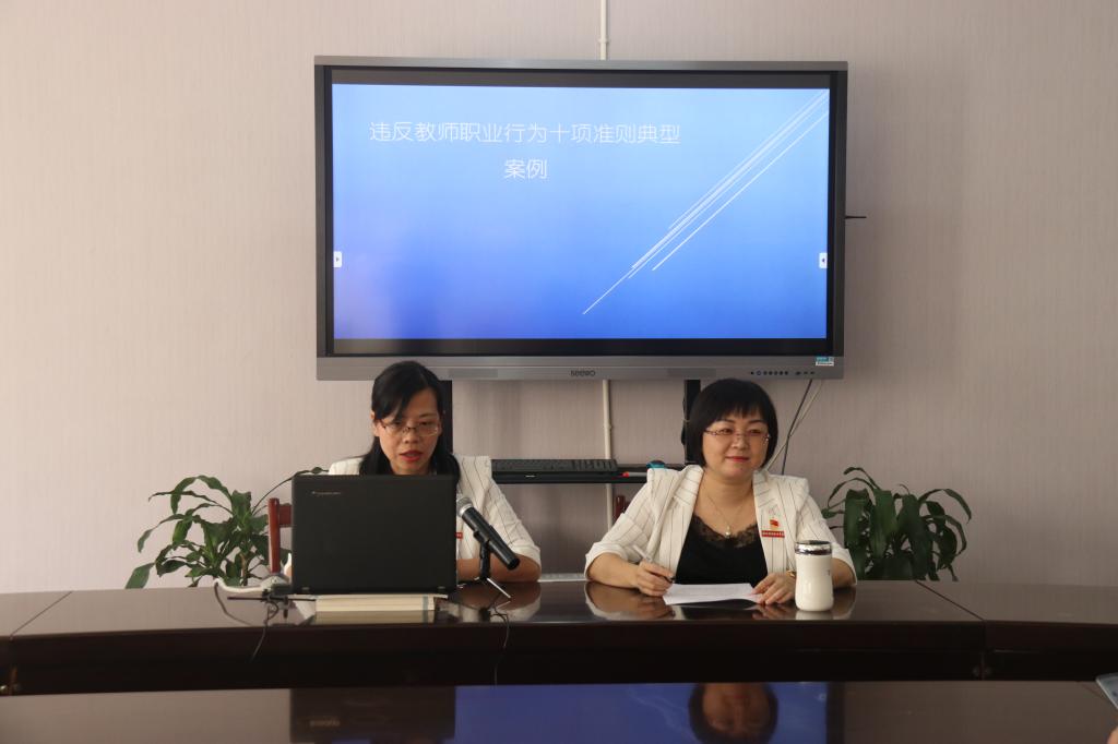 教师支部书记谢惠茹还通报了教育部公开曝光6起违反教师职业行为十项准则典型案例 ,对全体教师开展警示教育。