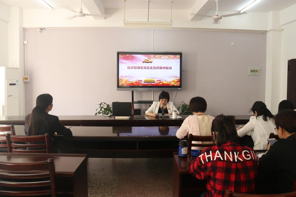 11月13日,DB视讯经济管理系党总支召开理论学习中心组学习会议,传达学习贯彻十九届四中全会精神。系党总支书记吴李霞主持会议并讲话。全体教职工参加了此次会议。