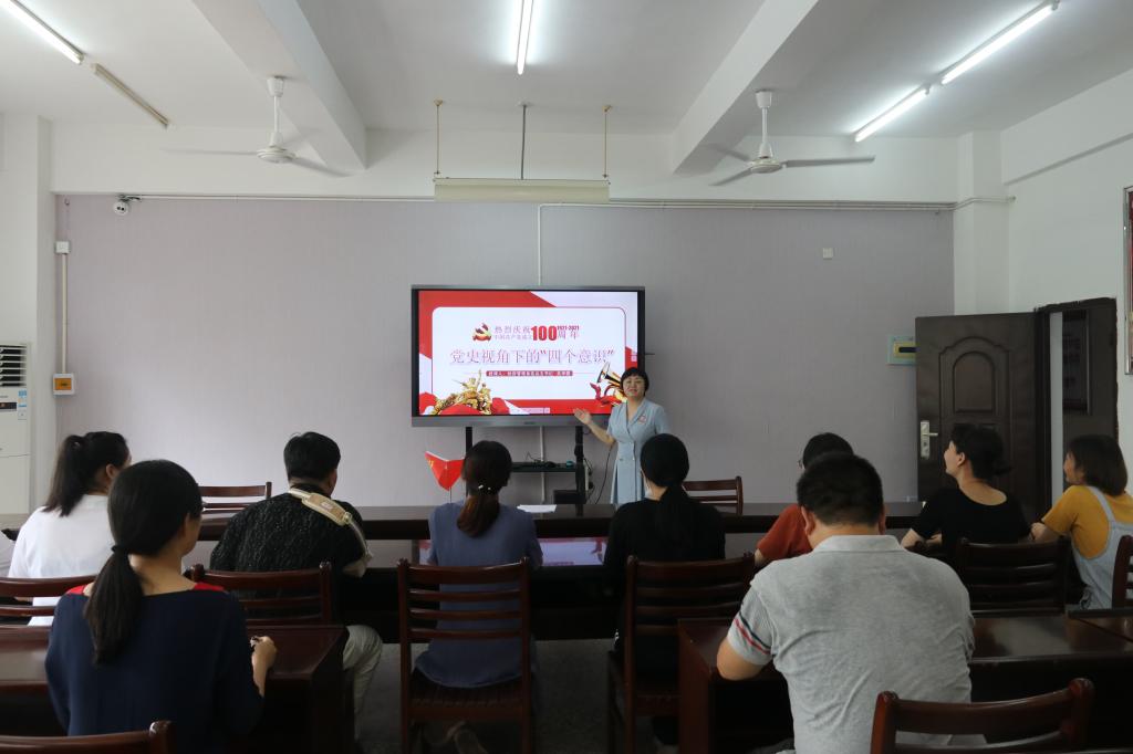 百年恰是风华正茂,初心使命历久弥坚。为献礼中国共产党百年华诞,深入推进党史学习,6月29日上午,经济管理系党总支书记吴李霞以“党史视角下的‘四个意识’ ”为题,为教师党员上了一堂主旨鲜明、思想深刻、立意高远的专题党课。