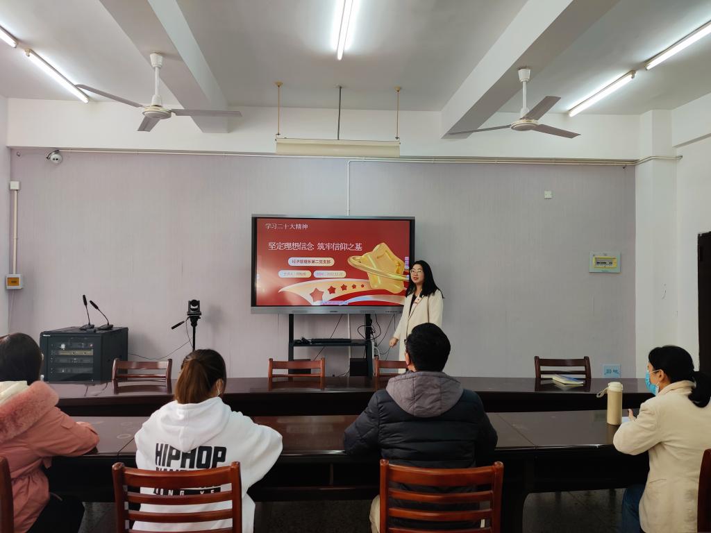 活动开始,支部书记柯桂芳为全体党员讲授题为“坚定理想信念,筑牢信仰之基”的党课。柯桂芳分别从牢记使命、坚定信念、忠诚履职三个角度出发,紧密结合学习党的二十大精神,深入解读党的性质与宗旨。柯桂芳强调作为教育工作者,我们肩负着为党育人、为国育才的重大使命,希望广大党员教师一定要坚定理想信念、勇扛责任担当,自觉用二十大精神武装头脑,不断筑牢思想根基。