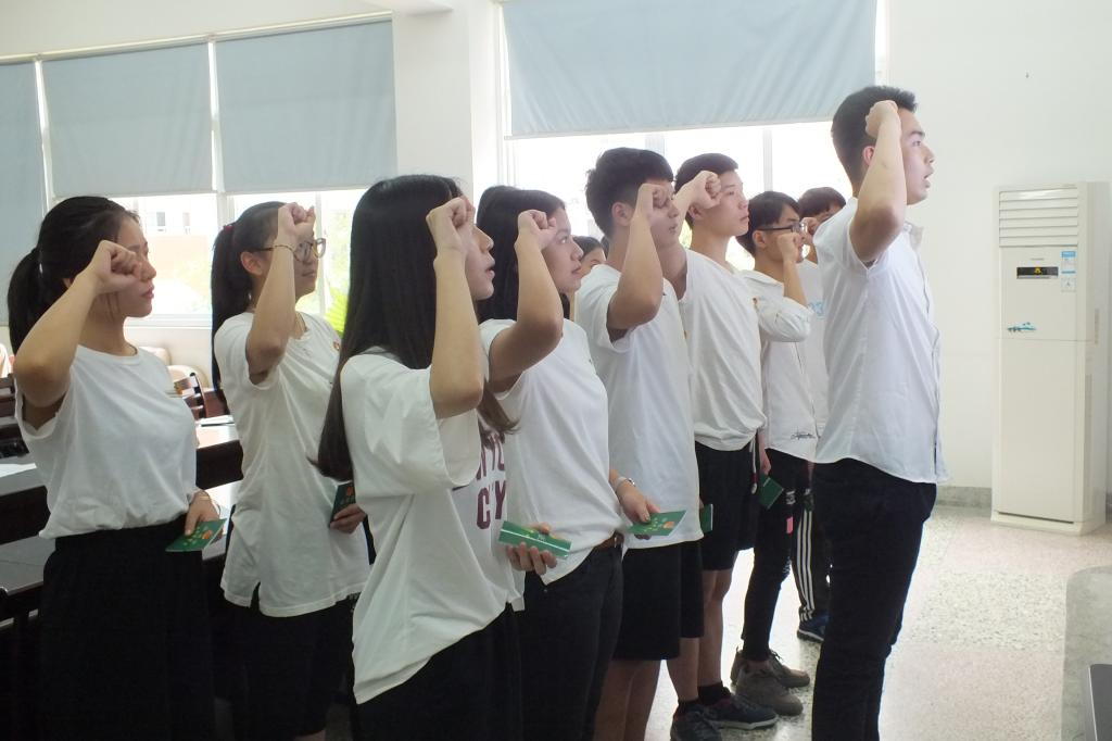 陈林艺老师对光荣加入团组织的新团员提出了殷切期望,希望新团员坚定理想信念,增强作为共青团员的自豪感和使命感,不忘初心跟党走,希望他们树立远大理想,刻苦学习,严于律己,顽强拼搏,牢记入团誓词,用良好的言行来实践誓词,树立好团员的鲜明形象,争取成为一个优秀的共青团员。